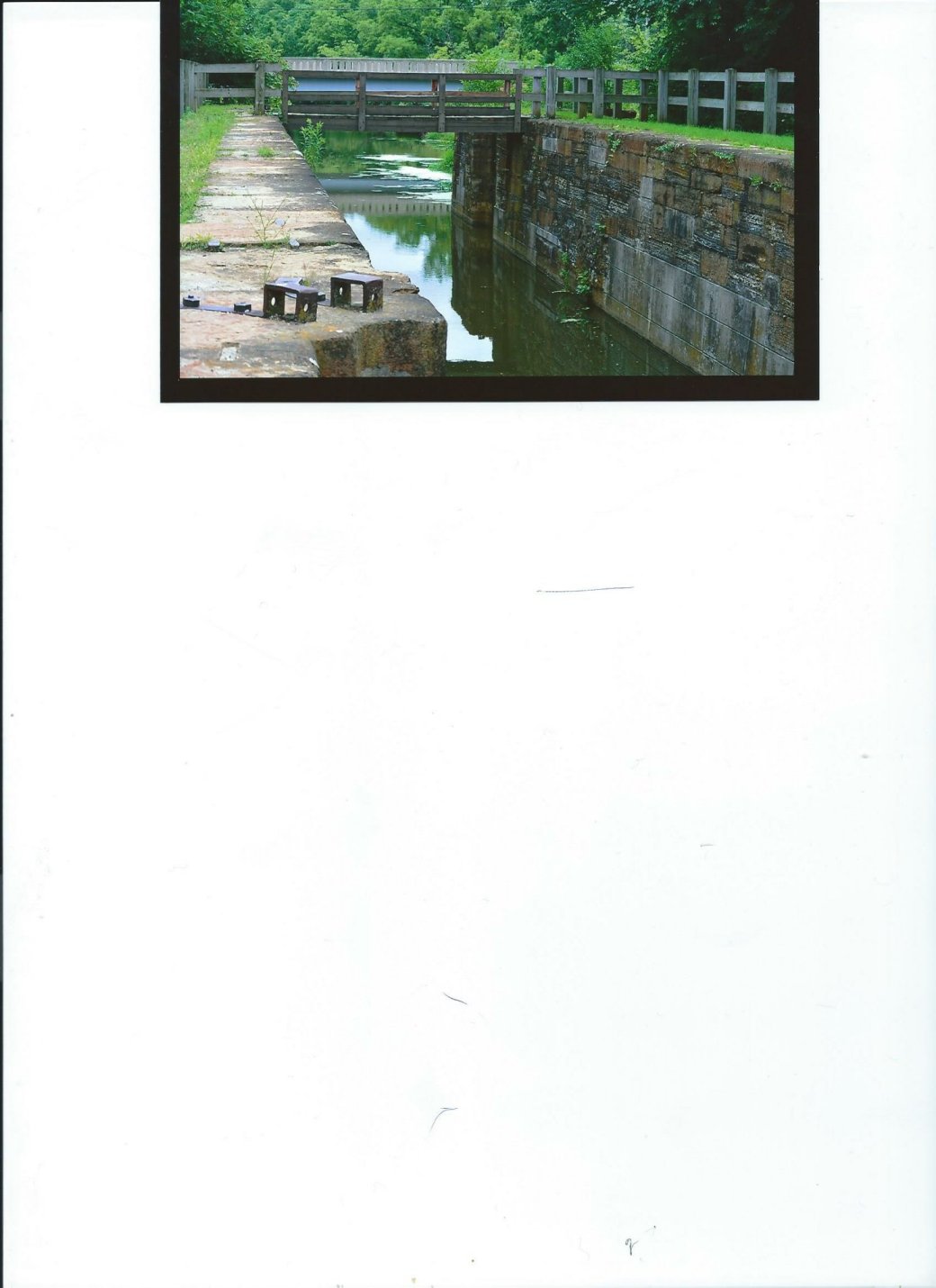 The Illinois Michigan Canal at Channahon is an interesting region. It is at this site that Locks 6 and 7 are located. The DuPage River crosses the Canal. During construction of the Canal several options were considered for this region. First consideration was for an aqueduct to cross the River. This option was used at other sites of rivers crossing the canal. However, this option was discarded as too expensive. Next consideration was for a feeder canal. This was built. The contractors were Harris and and Johnston. This canal extended from the DuPage River near Minooka to the area near Lock 7. Eventually, this was taken down. In its place, a dam was built across the DuPage River between the two locks. A control gate was created adjacent to Lock 7. This allowed water from the River to enter the Canal. This set up exists until present time.