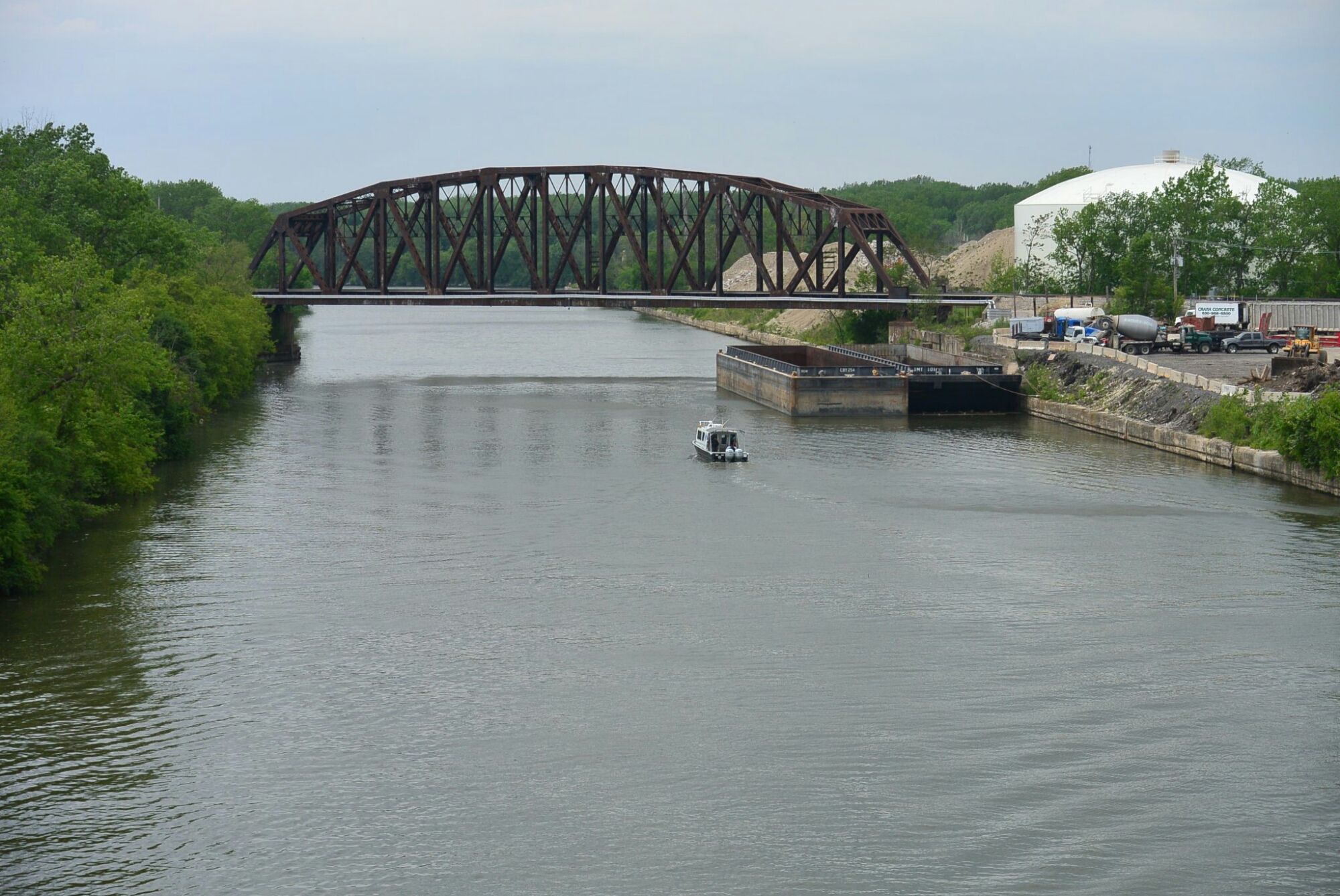 This is a view of this bridge from a boat at the junction of the Sanitary and Ship Canal and the Cal Sag Canal.