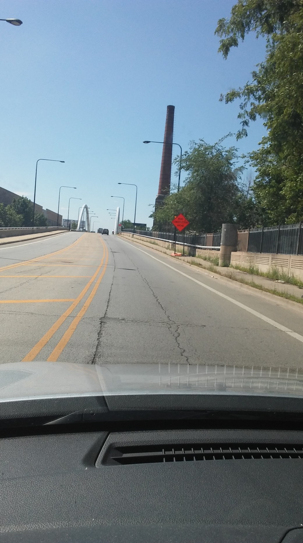 The current North Damen Avenue Bridge (2560 North; 2000 West) runs North South over the North Branch of the Chicago River 5.6 miles from the river mouth. It is the second bridge at this location. It opened in 1999.It is a fixed arch suspension bridge. There are twin arches.