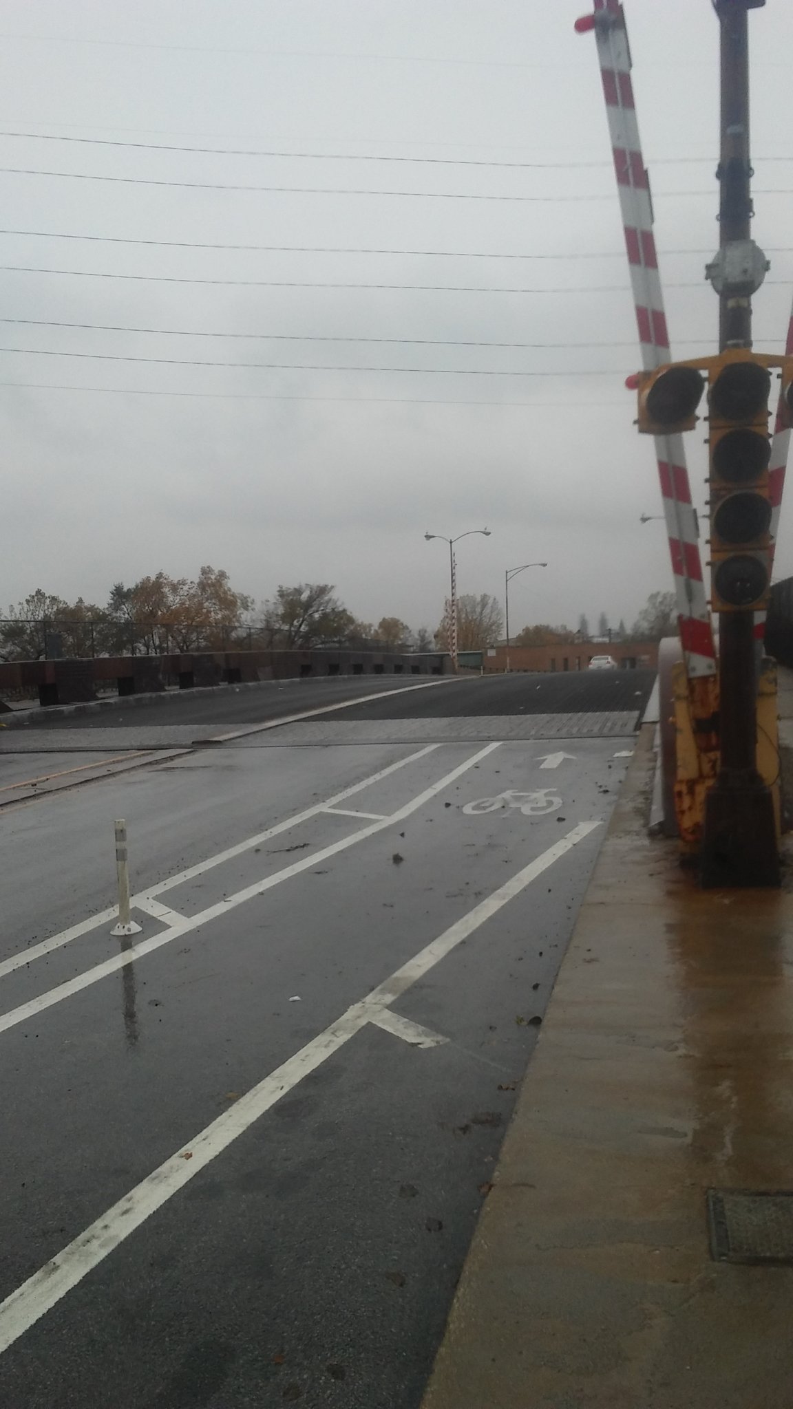 The bridge was designed to carry the extra traffic flow from the closure of the Throop Street Bridge (one block south).