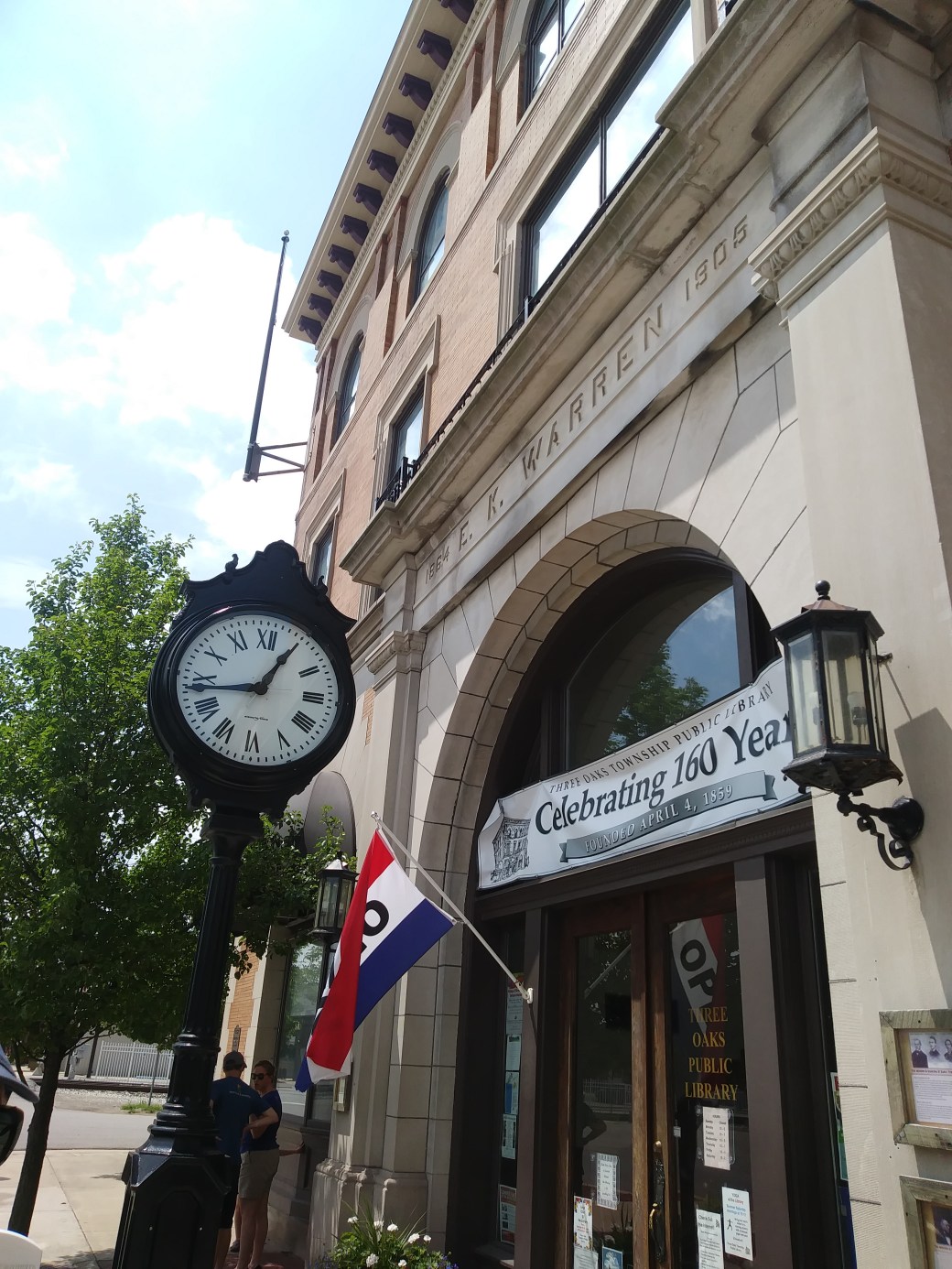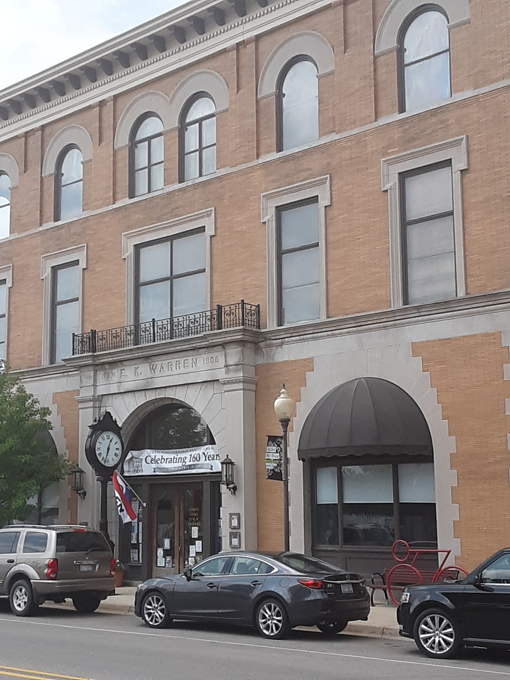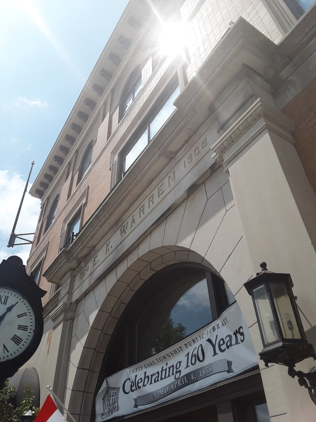 This building is located at 3 North Elm Street in Three Oaks, Michigan. It was owned by Edward K. Warren. In 1858, he opened a dry goods store in Three Oaks. He developed the product feather bone as a replacement for whalebone stays used in women’s dresses. He opened a factory in Three Oaks to manufacture the new stays. In 1905, his company built a new office space at 3 North Elm Street. Warred hired architect George Allan to design the building as the headquarters for Warren Feather Bone Company.