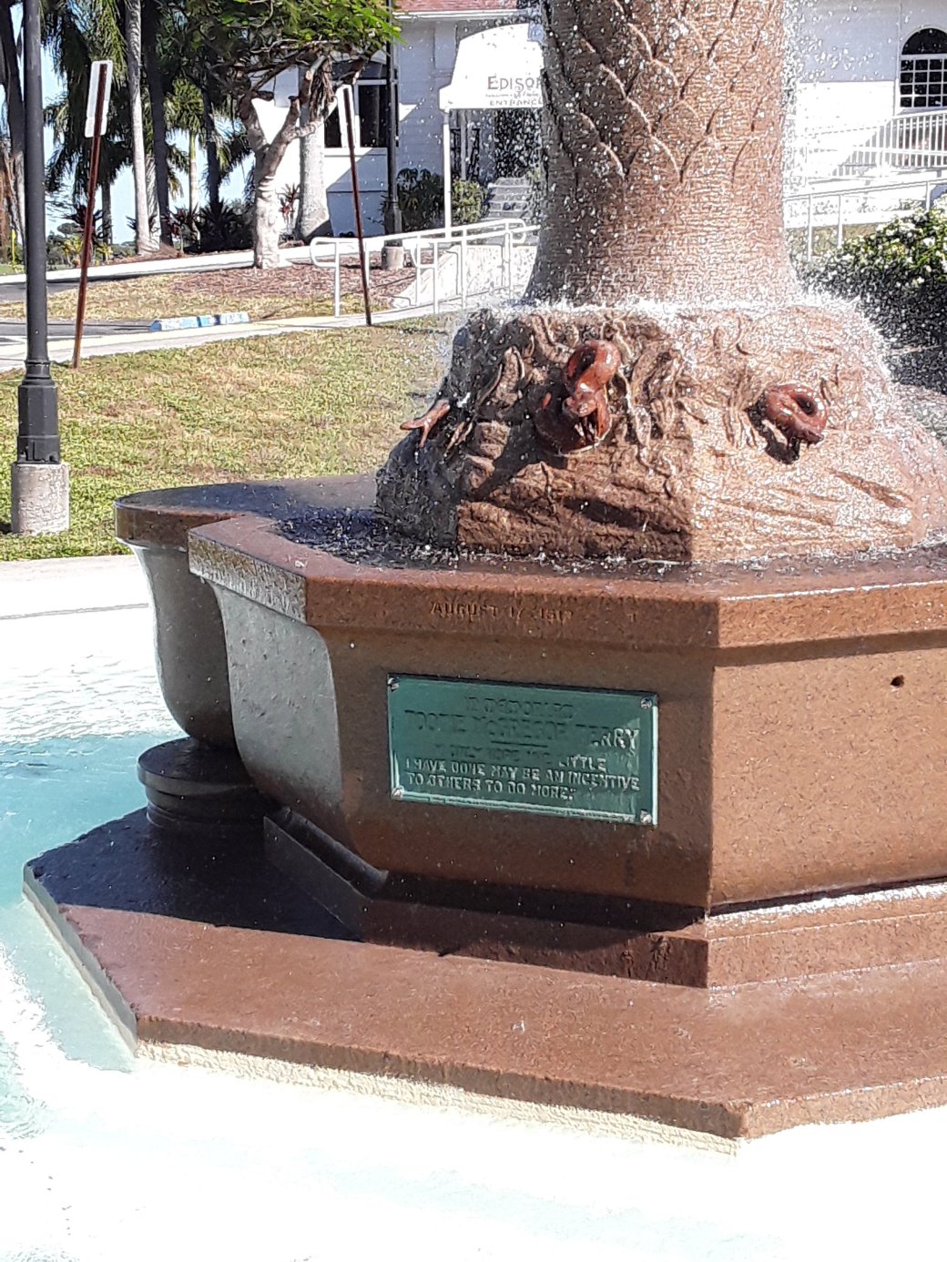 The Tootie McGregor Fountain was built in 1913 to honor the memory of one of Fort Myers early pioneers.
