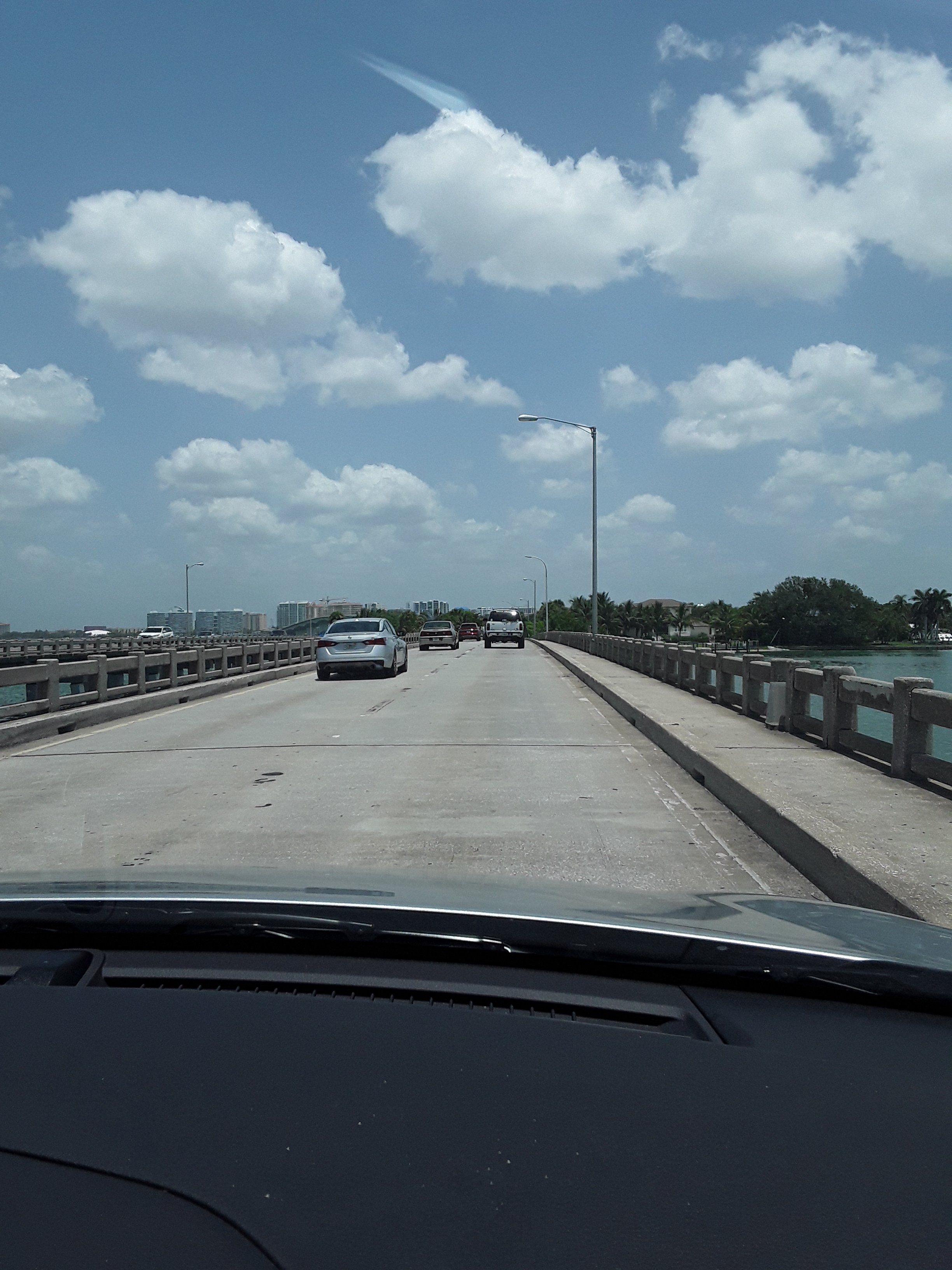View from John Ringling Causeway Bridge Approximately in 2000, it became apparent that the bridge was inadequate for its needs. In 2001, construction began on a new high span bridge. The bridge is 65 feet tall. It opened in 2003. Construction costs were 68 million dollars. It was built by PCL Construction.