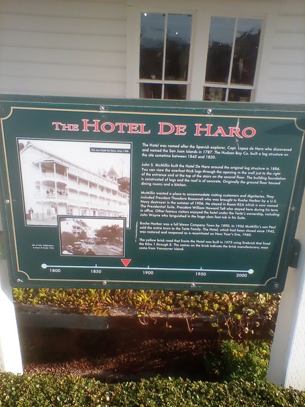Theodore Roosevelt visited the Hotel in 1906. Roche Harbor was a full blown company town in the 1890’s.