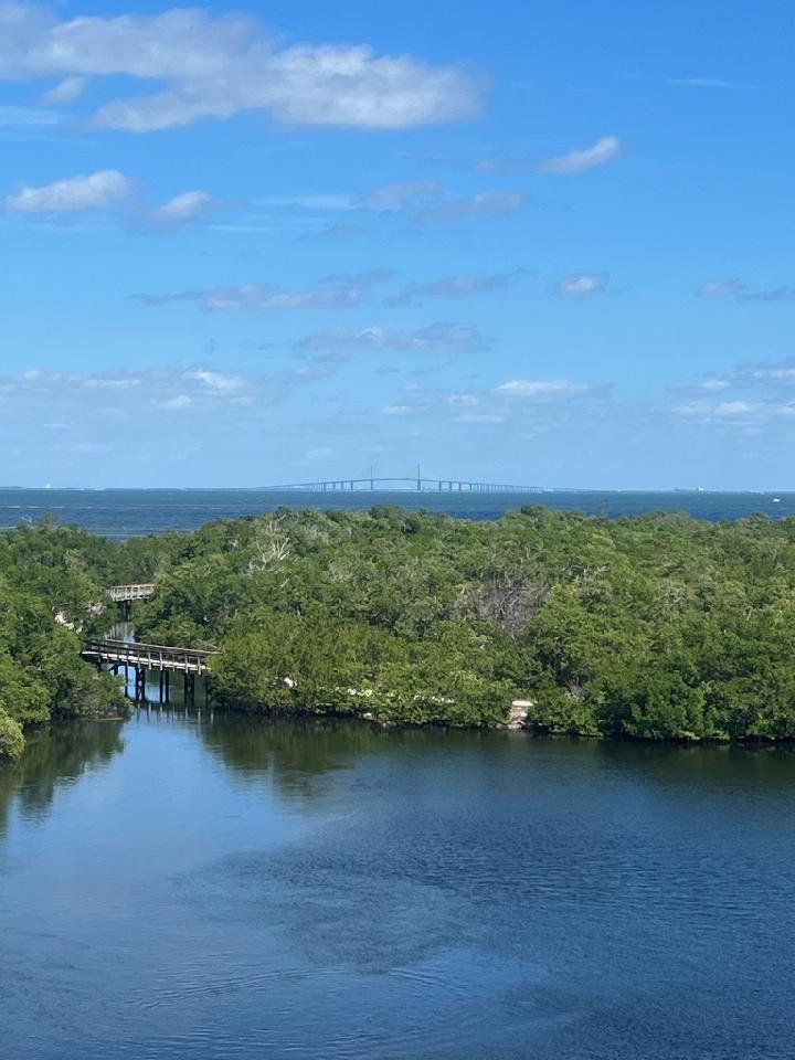 The Sunset Skway Bridge is also known as the Bob Graham Sunshine Skyway Bridge. It consists of a pair of long beam bridges with a central cable stayed bridge. It spans Lower Tampa Bay. It connects Saint Petersburg to Terra Ceia.