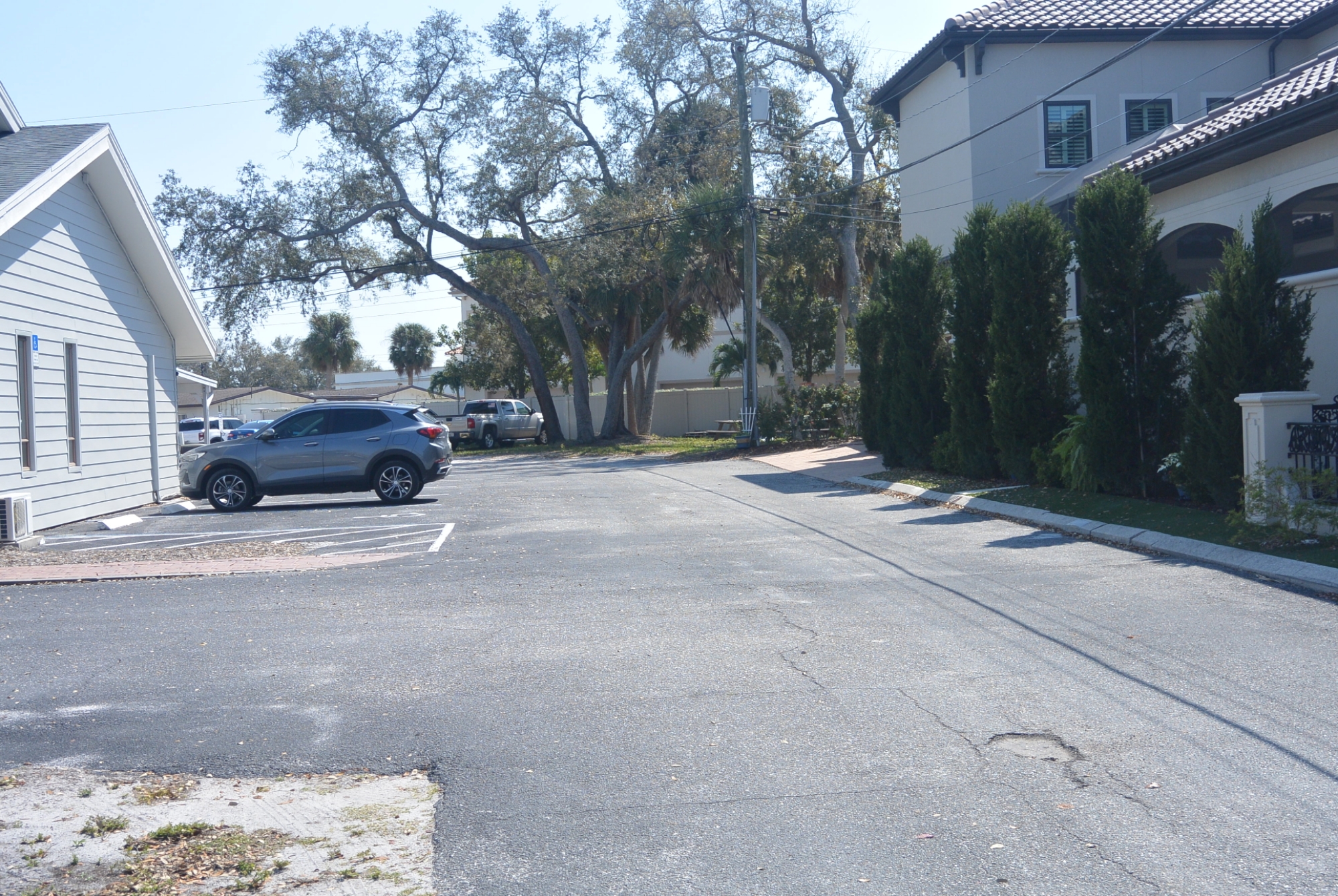 The access to each of the pocket parks is on terra cotta posts