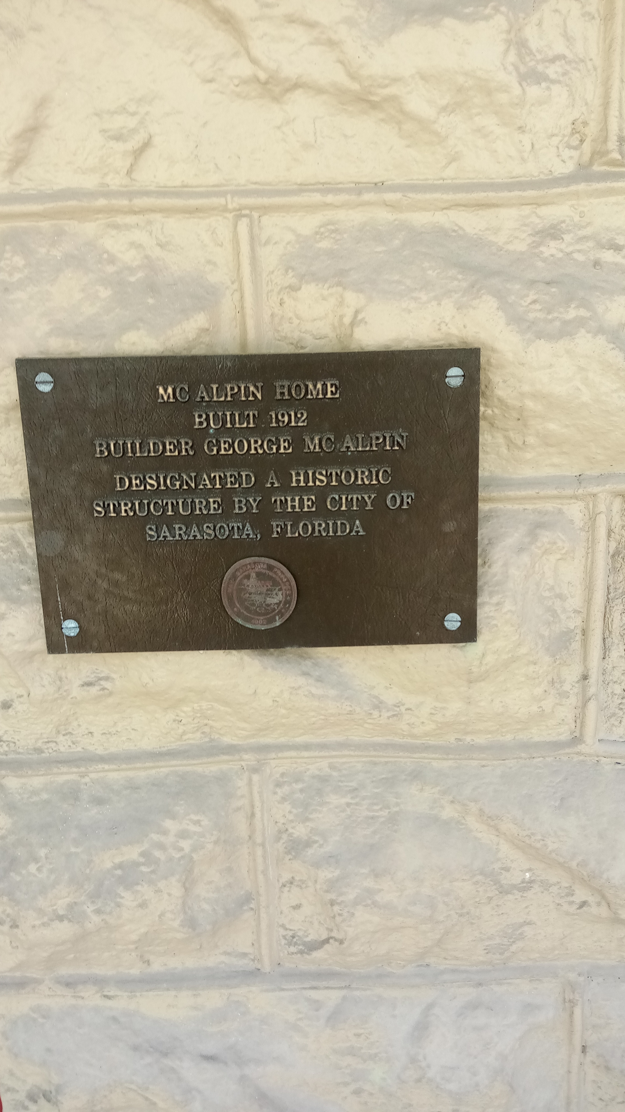 George and Margaret McAlpin moved into the Sarasota area in 1904. In 1911, McAlpin and Owen Burns formed the Burns and McAlpin Construction Company. During the next ten years, they laid more than 10 miles of sidewalk. They also poured the foundation.of the Hotel Higelhurst. In 1915, they dissolved their company. He died in 1922. He left the house to his wife and son William.