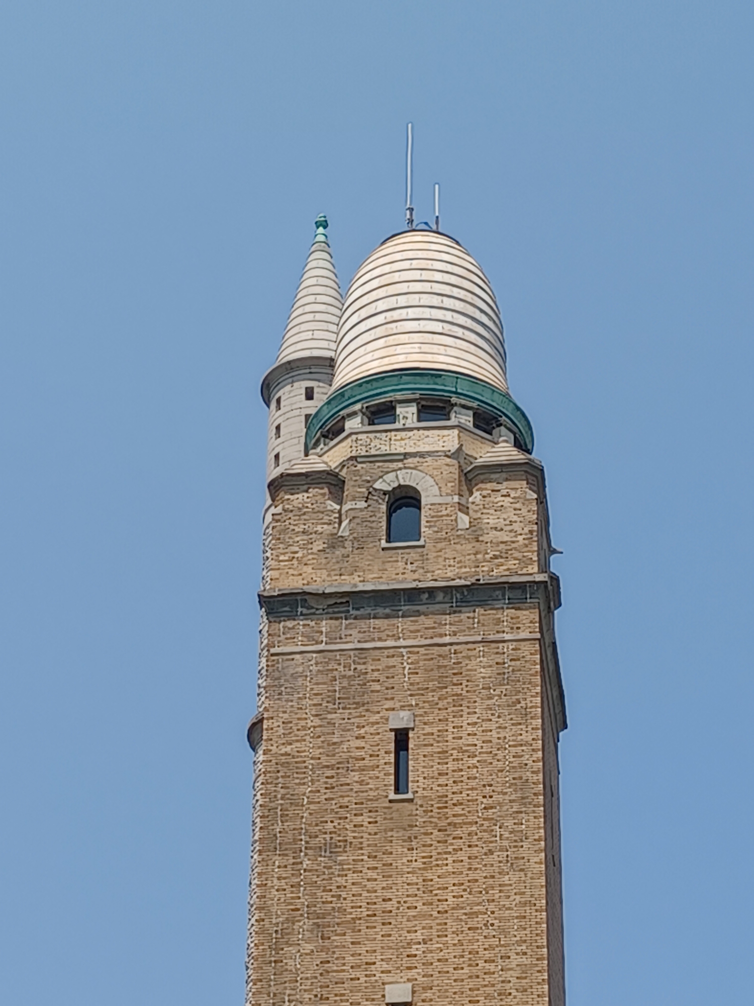 There is a stand pipe in the tower. Its role was to absorb surges from the late 19th century reciprocating water pump. There is a spiral staircase in the tower. There are 198 steps.