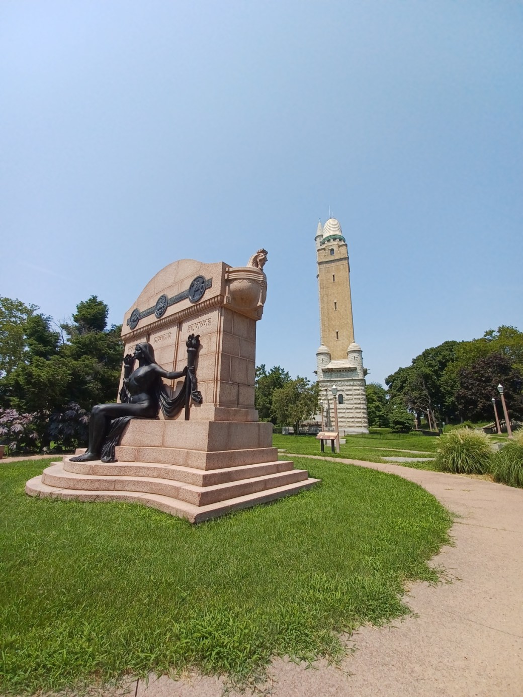 The monument was created in 1914. The sculptor was William Wandschneider. One the major donors was Augustus Busch. The pedestal is 19 feet 10 inches.