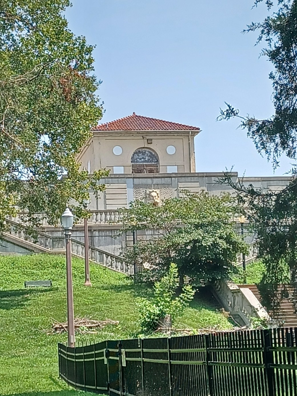 The reservoir had a capacity of 28 million gallons. Reservoir Wall was designed by Guy Study. The reservoir covered 18 acres. Steps and wall fountain resembled the gardens of Italian Villas.